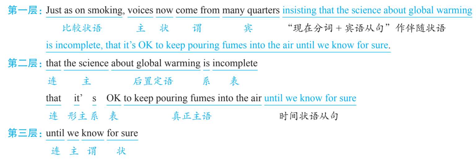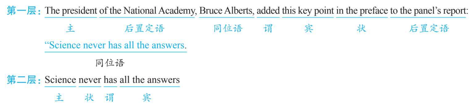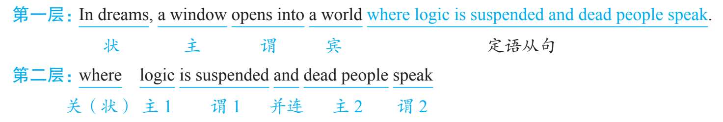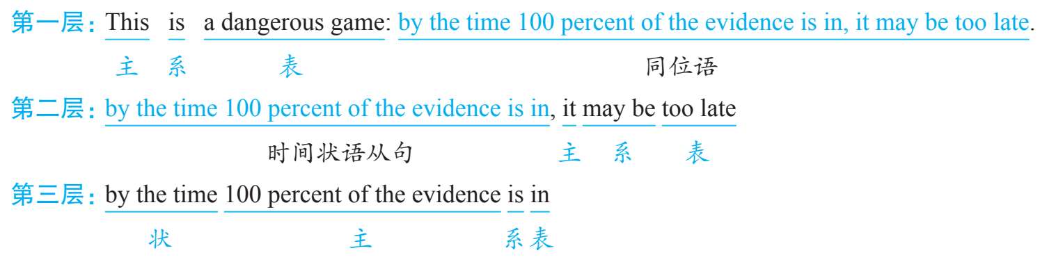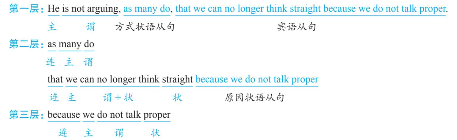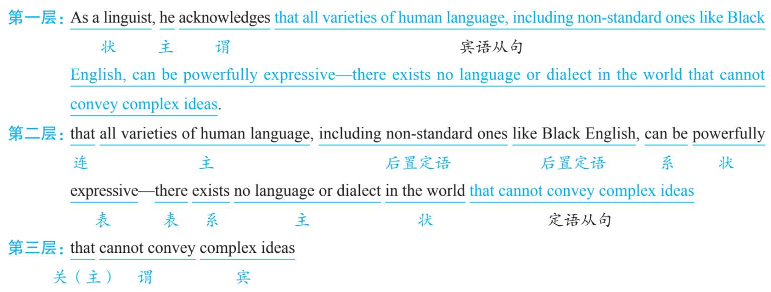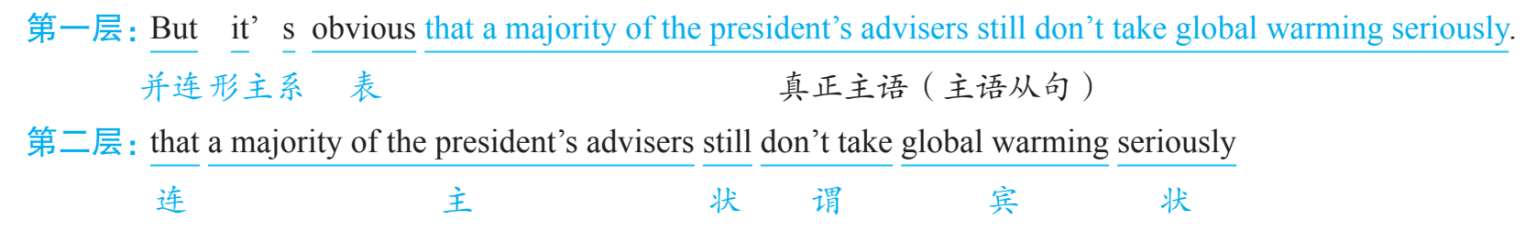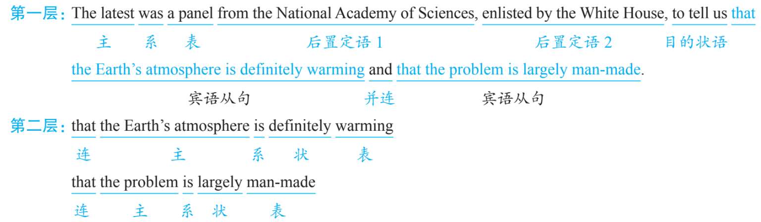 讲解: 该句为主从复合句,主句为主谓宾结构,宾语部分为that引导的宾语从句,从句为主谓结构。