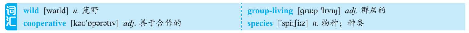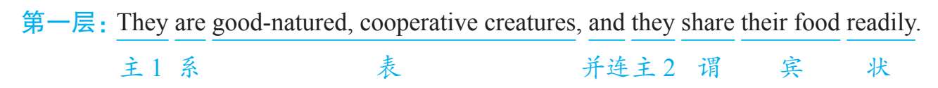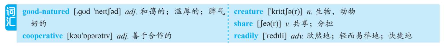 译文: 它们性情温顺,善于合作,且乐于分享食物。