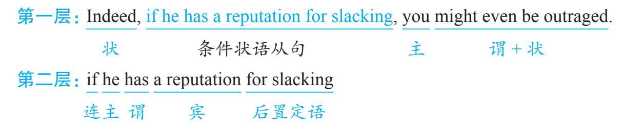 译文: 事实上,如果他有工作懒散的名声,那么你甚至可能会感到愤怒。
