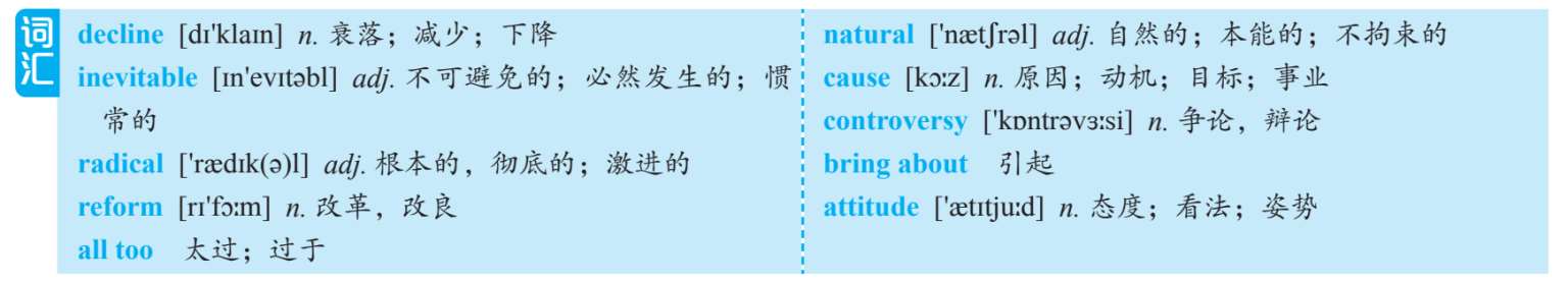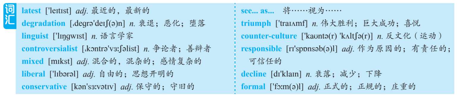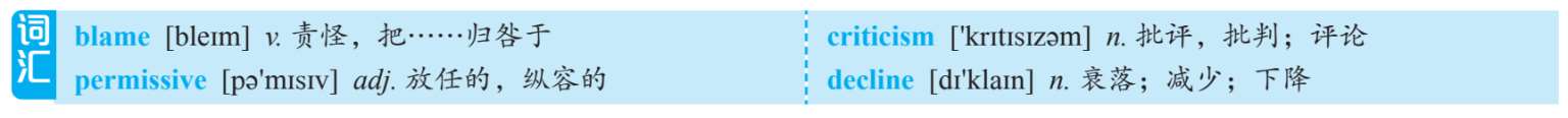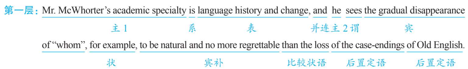 Ⅱ①Blaming the permissive 1960s is nothing new, but this is not yet another criticism against the decline in education. ②Mr. McWhorter’s academic speciality is language history and change, and he sees the gradual disappearance of“whom”, for example, to be natural and no more regrettable than the loss of the case-endings of Old English.