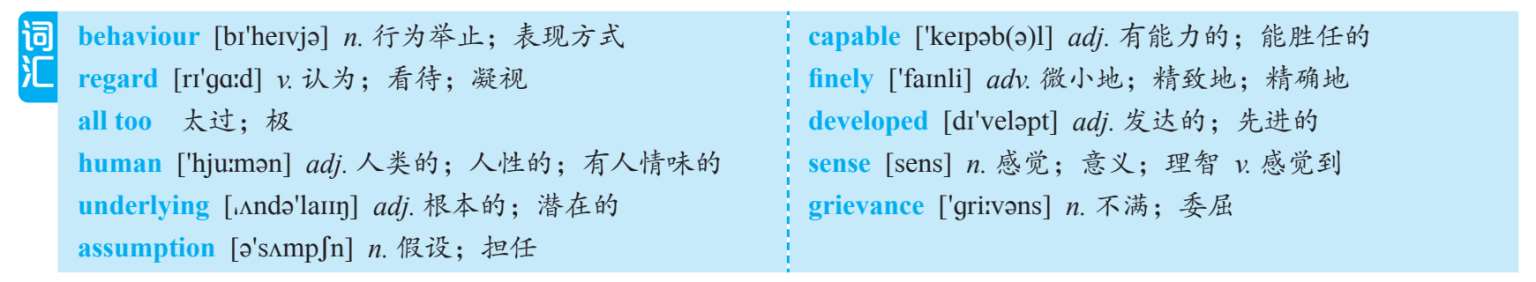 4.Such behaviour is regarded as“all too human”,with the underlying assumption that other animals would not be capable of this finely developed sense of grievance.