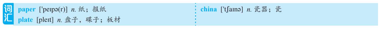 40. According to the last paragraph, “paper plates”is to“china”as______.最后一段中,“纸盘子”之于“瓷盘子”就好比____。