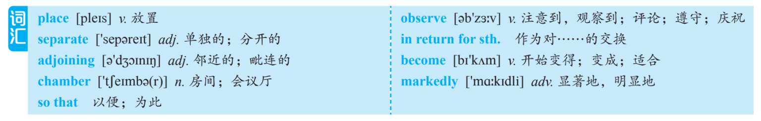 13.However,when two monkeys were placed in separate but adjoining chambers,so that each could observe what the other was getting in return for its rock, their behaviour became markedly different.