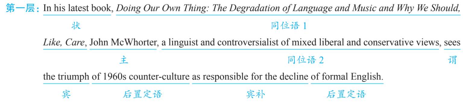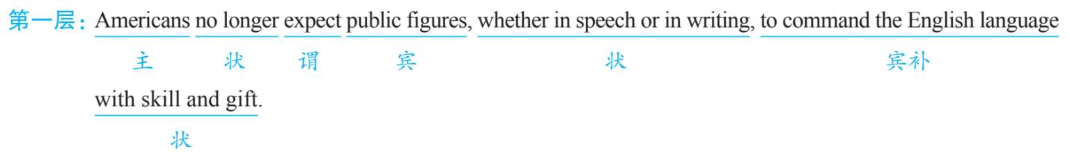 Ⅰ①Americans no longer expect public figures, whether in speech or in writing, to command the English language with skill and gift. ②Nor do they aspire to such command themselves. ③In his latest book, Doing Our Own Thing: The Degradation of Language and Music and Why We Should, Like, Care , John McWhorter, a linguist and controversialist of mixed liberal and conservative views, sees the triumph of 1960s counter-culture as responsible for the decline of formal English.