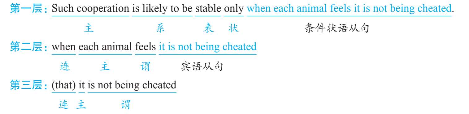 译文: 只有当每只猴子都觉得自己没有被欺骗时,这种合作才可能保持稳定。