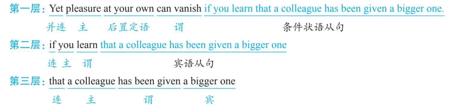 译文: 但是,如果你知道某位同事的薪水涨幅更大,那么加薪给你自己带来的快乐就会消失殆尽。