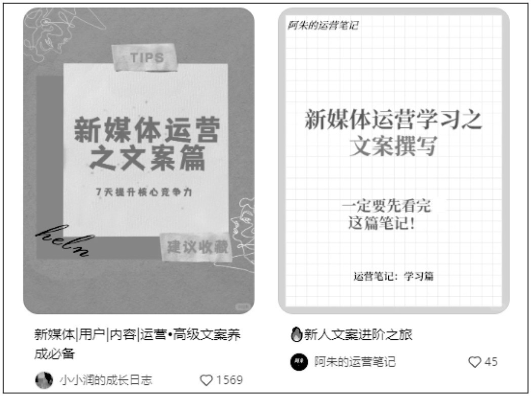 新媒体文案写作要求创作者频繁接触新媒体平台,这也给了创作者许多学习的机会。小红书、微信、知乎、抖音等各大新媒体平台都有文案写作的相关知识。文案创作者要有意识地收集并学习。图1-17所示为小红书的新媒体文案知识。