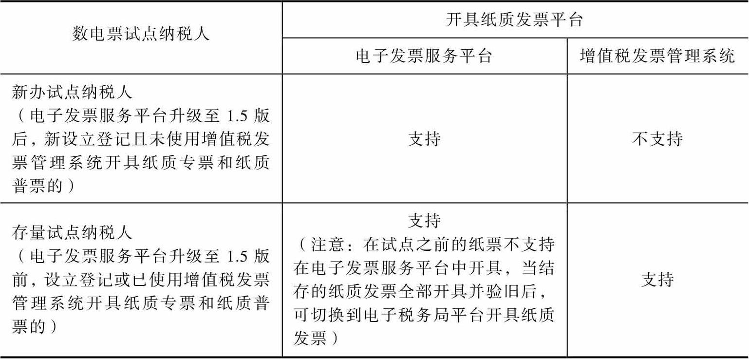 表1.2 数电票和传统税控发票对不同试点纳税人的支持情况