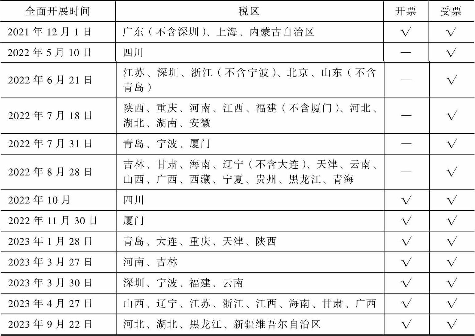 表1.3 已全面开展数电票试点税区