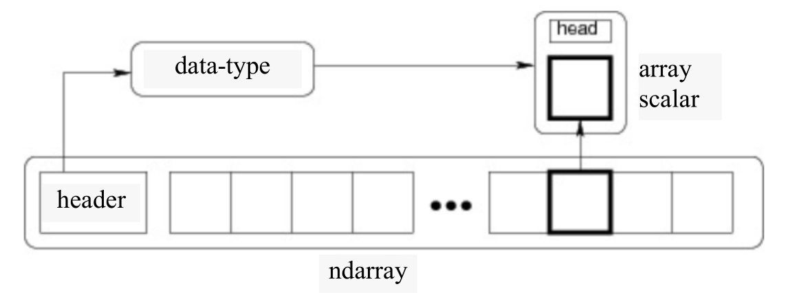 NumPy最重要的一个特点是其 N 维数组对象ndarray,它是一系列同类型数据的集合,下标从0开始对集合中的元素进行索引。ndarray对象是用于存放同类型元素的多维数组,每个元素在内存中都占有相同存储大小的区域。ndarray内部由以下内容组成: