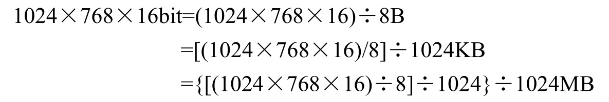 例如,一幅画的尺寸是1024×768像素,深度为16,则它的数据量为1.5MB,计算如下: