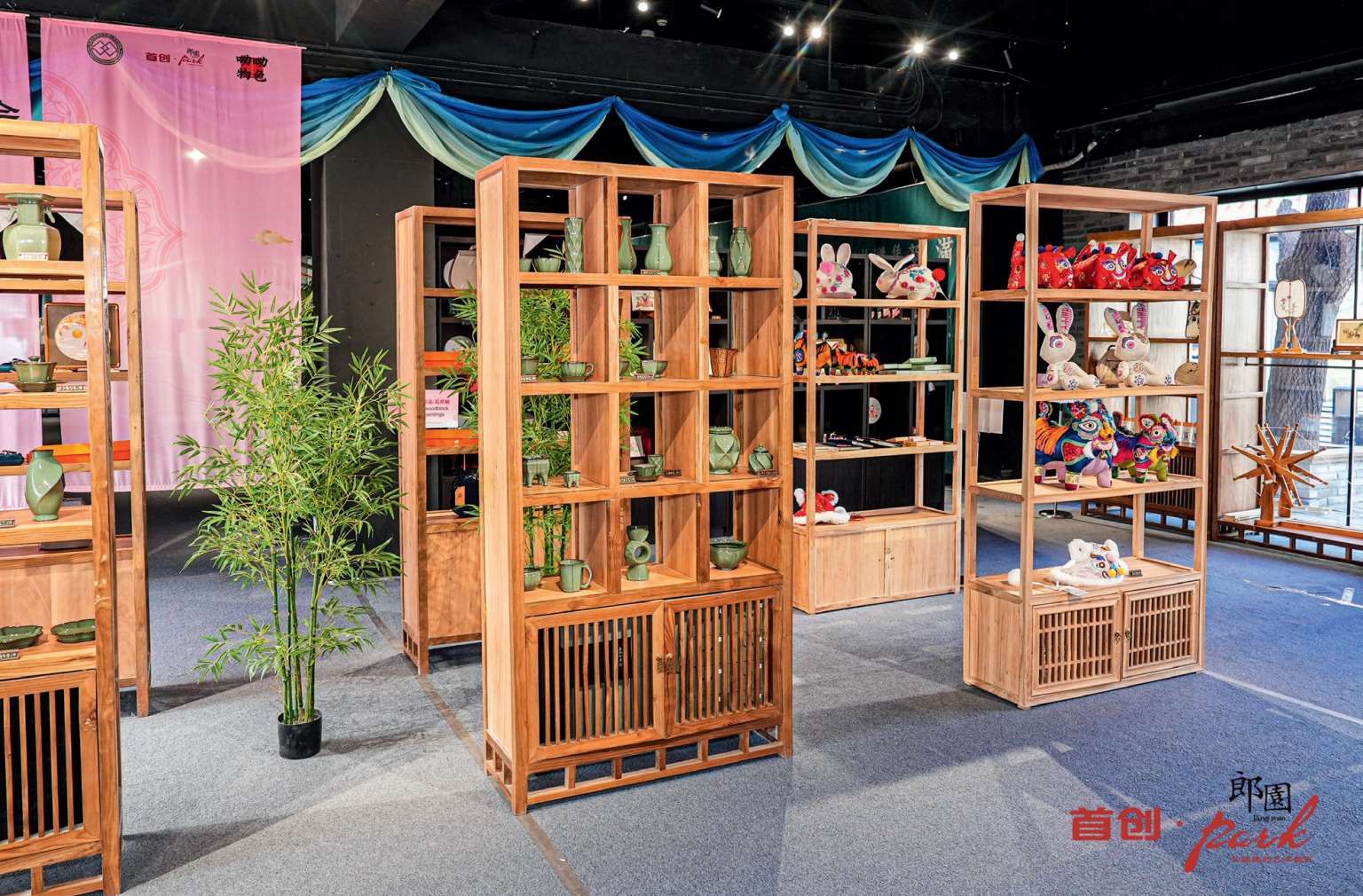 东方美学空间的生命力,在于传统元素与现代功能的融合。“呦呦物色”深谙此道,秉持“以用为美,以人为本”的原则。色彩上,中国红在年味市集中层层铺展,既渲染吉祥喜庆,更通过色彩心理学合理搭配色彩比例,确保视觉舒适。材质方面,传统的木材、竹子、丝绸与现代的金属、玻璃巧妙对话,打造出木质展架与玻璃展柜的组合,诉说着古韵与今用的和谐。符号运用上,榫卯结构、中式纹样被抽象或简化,墙面装饰线条宛若中式屏风的现代剪影,文化底蕴得以保留,繁复却悄然隐退。郎园Station打造“呦呦商店”时,面对展现东方美学与满足现代零售运营的挑战,经过反复研讨,将木质格栅设计成局部装饰元素,结合开放式货架与简洁陈列架,既保留东方韵味又保证空间开阔便捷。