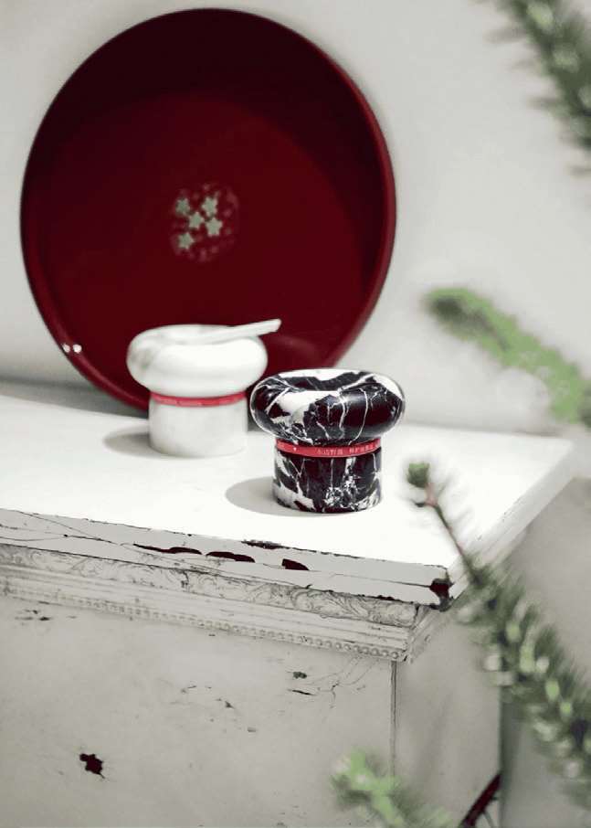 以明星单品“灵芝修护淡纹精华油”为例,它将当代工业设计与古典花器元素相结合,中轴对称与流线型结构既美观又符合人体工学;树脂外壳与可替换的玻璃芯,则让美学与可持续理念融为一体,回应现代生活的需求。另一款“防晒”则以纯白瓶身搭配切割感红色竖条纹,如同微启的百叶窗帘,寓意为肌肤遮蔽烈日;顶部的红色球形瓶盖点缀其间,象征阳光下的活力。整体在简洁的设计中营造呼吸感与诗意。通过这些实践,东边野兽将“留白”与“气韵”转化为可感知的产品语言:让使用者在触摸、观感乃至使用的过程中,感受到东方哲学的含蓄与从容。