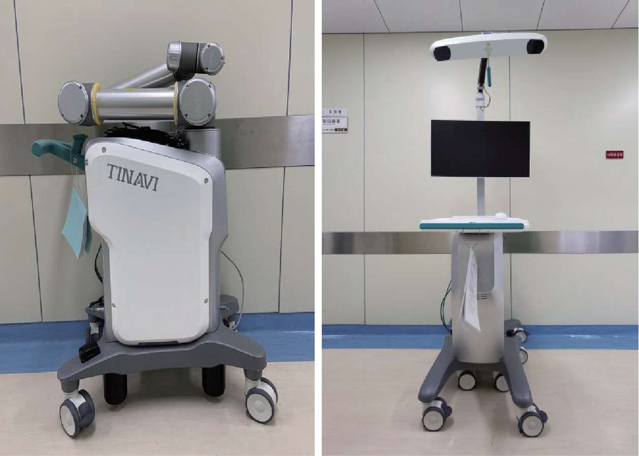 无菌物品:吸引器连接管、无菌贴膜、2-0 不可吸收编织线、9×24 角针、手套、15 号刀片、机器人专用保护套、G型臂保护套和 20 mL注射器。