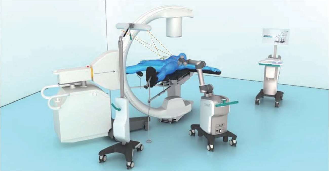 在技师辅助下进行图像采集、螺钉规划,机器人辅助下导针和空心钉置入。