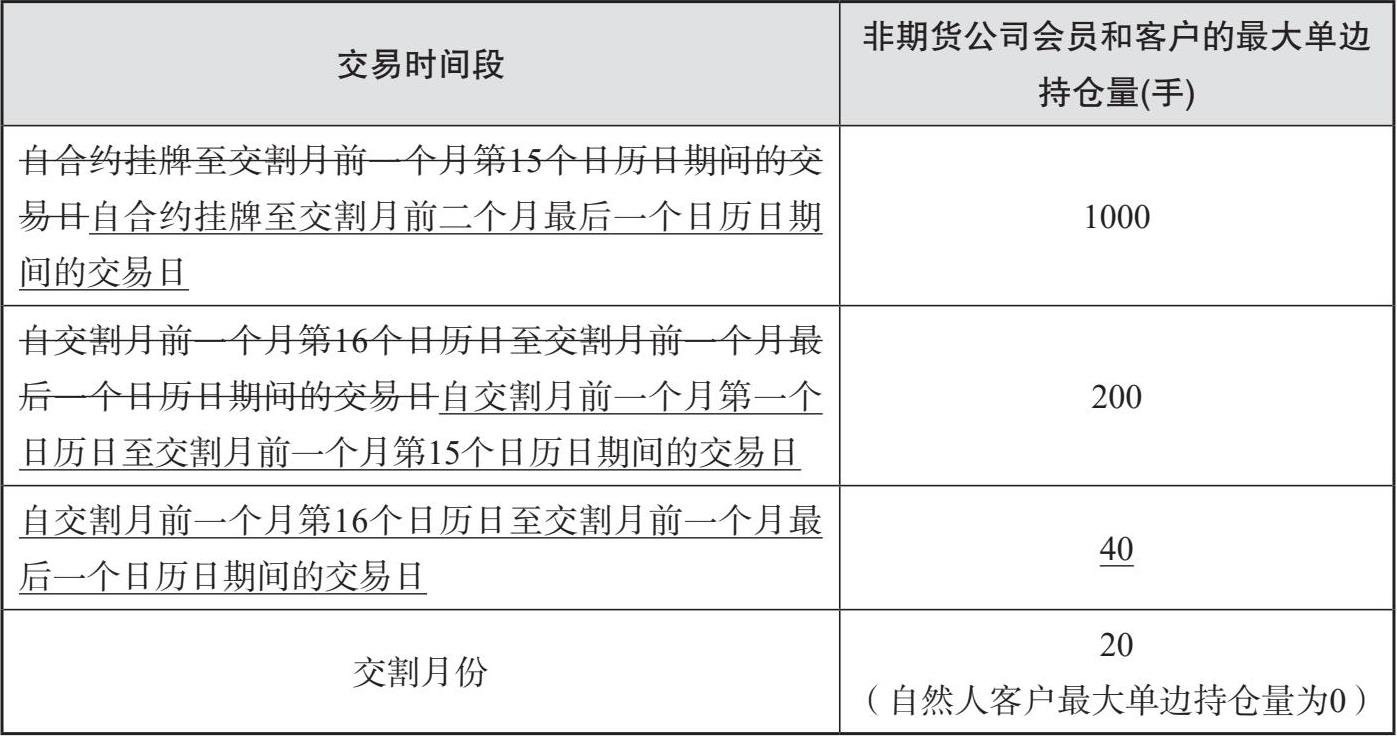 表2-10 修订条款对照(关于细则中第五十九条苹果期货合约限仓标准)