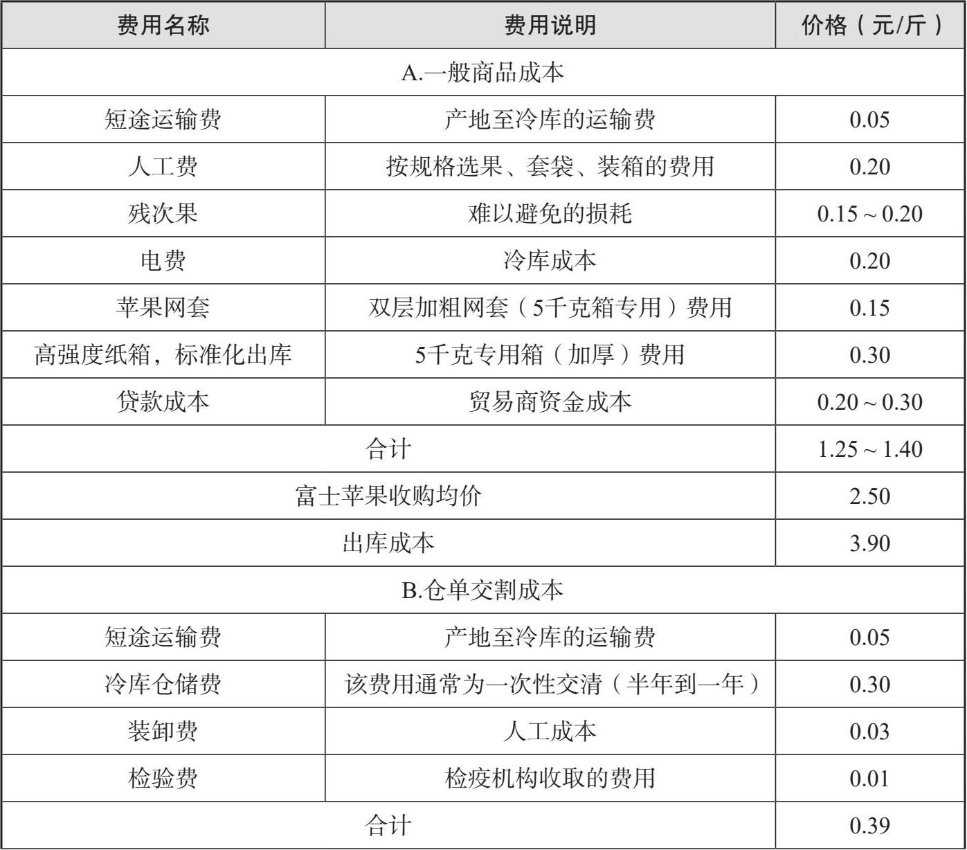 表2-9 山东烟台某地红富士苹果价格分解参考(2020年)