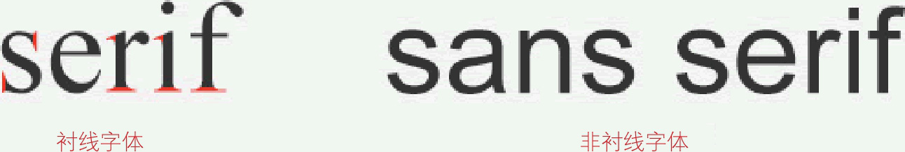 字体分为衬线字体(serif)和非衬线字体(sans serif),如图2-1所示。