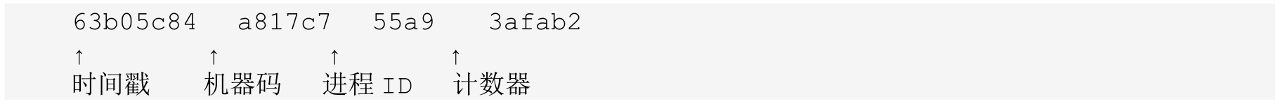 其中有几个数据类型,是在传统数据库中不常见的,例如Object ID、Object等。Object ID类似于关系数据库中的主键ID。在MongoDB中,Object ID由12字节的字符组成,其中: