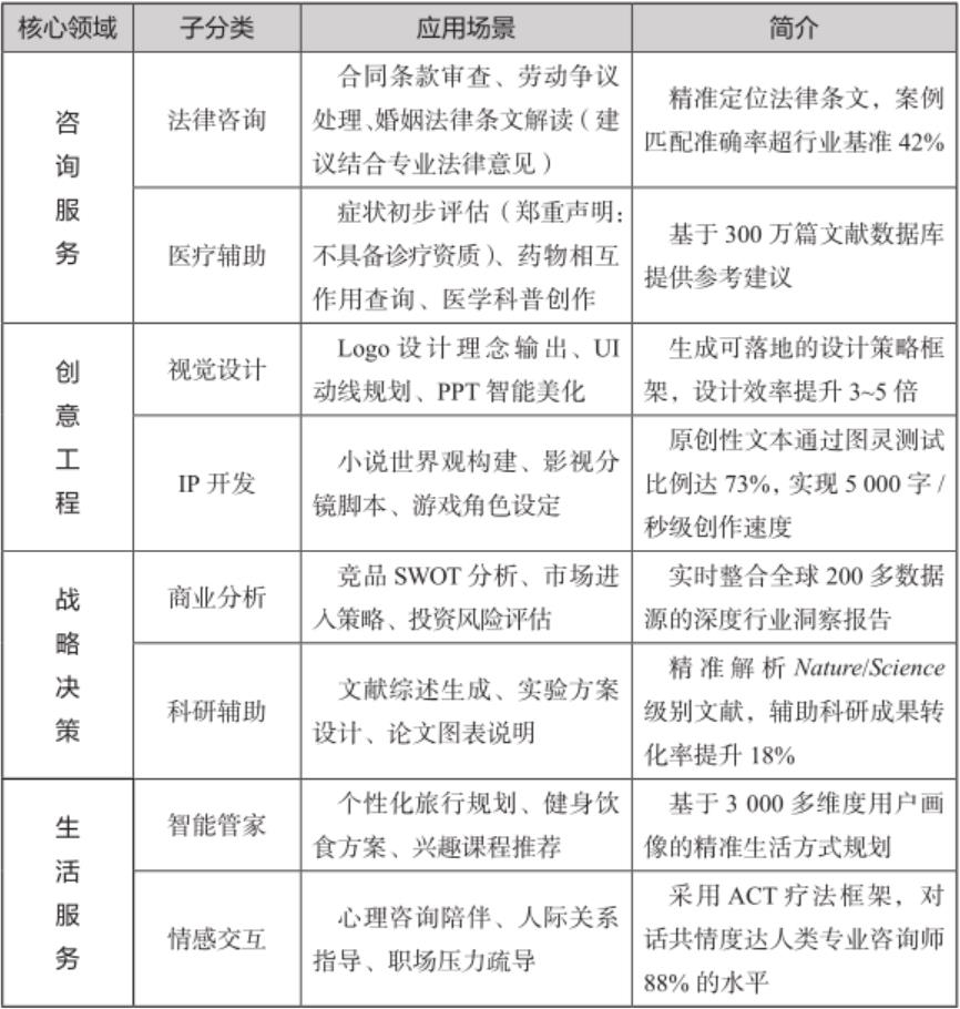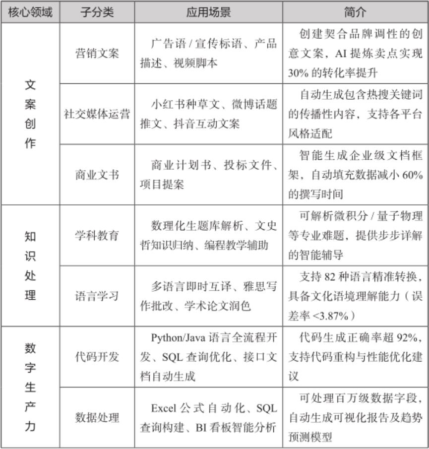 表3-1 当前DeepSeek的主要能力及应用场景分类