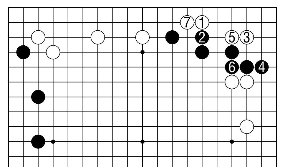 白1时,黑2扳无理,白3断,以下至白7,白棋吃住黑