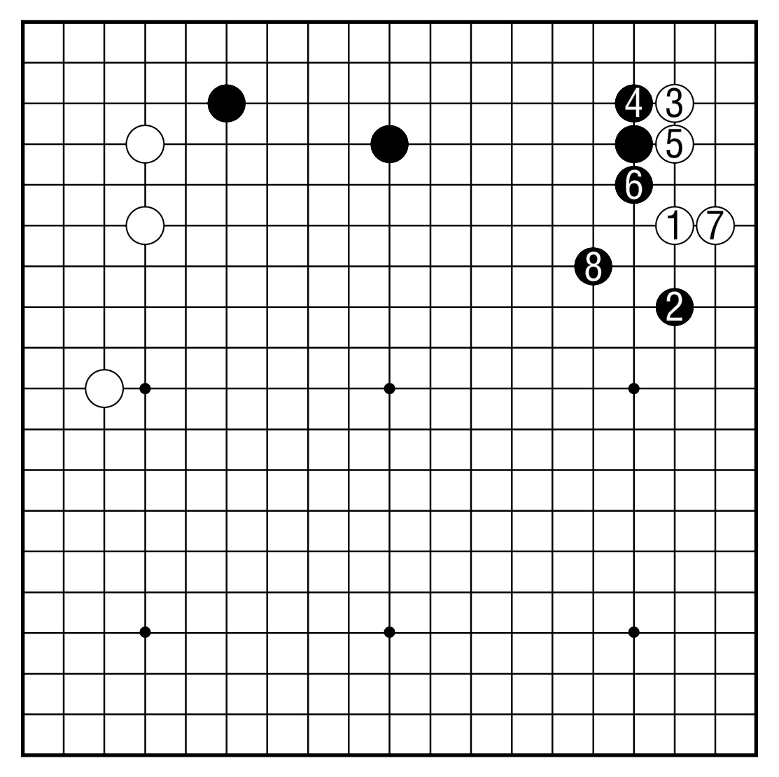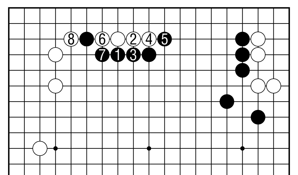 黑1、3后,白4与黑5交换,白6、8联络是正确的次序。