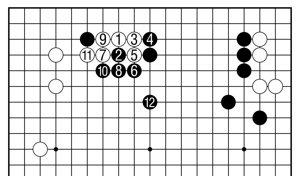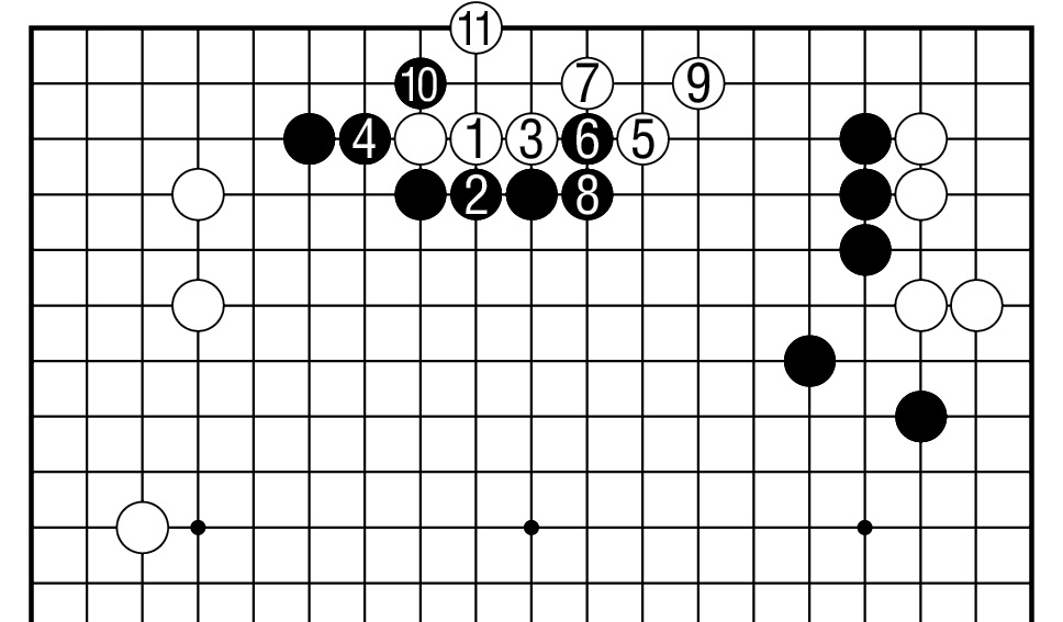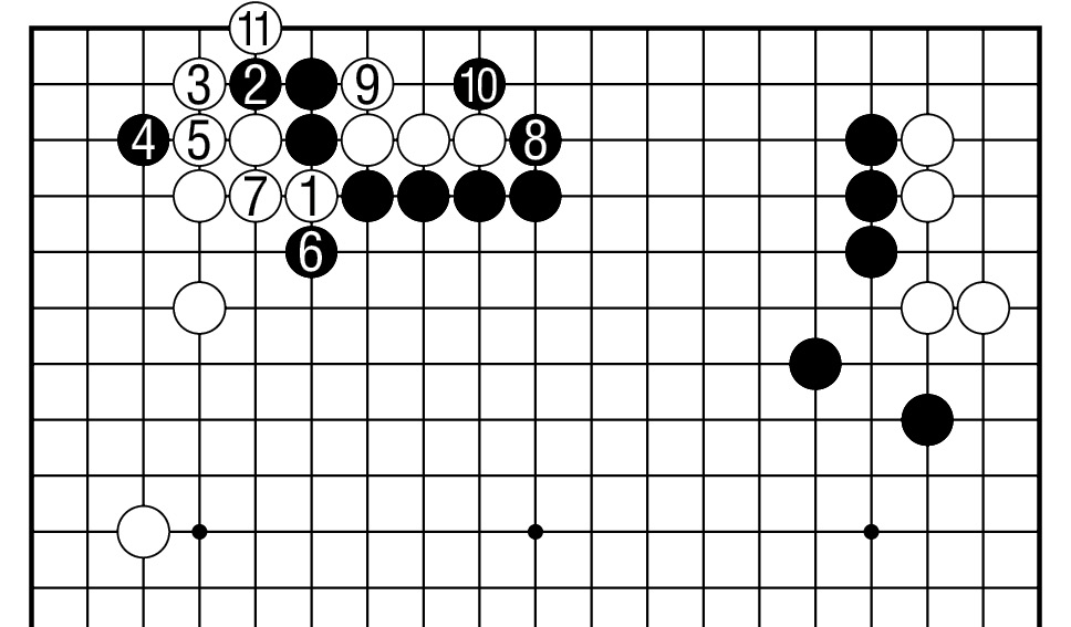续图3,其后白1只好断,以下至白11,黑棋厚势。