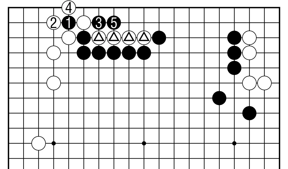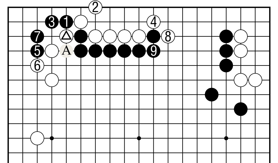 黑1、白2时,有黑3长的变化,其后白4扳,以下至黑9均是必然的次序,白棋破了上边黑空,白棋充分。黑A随时可打吃白