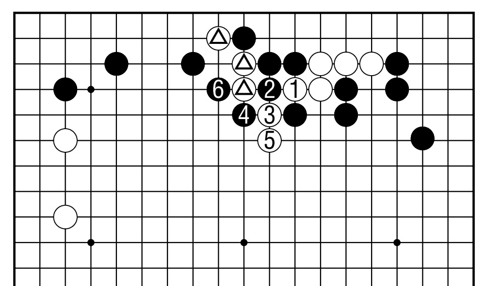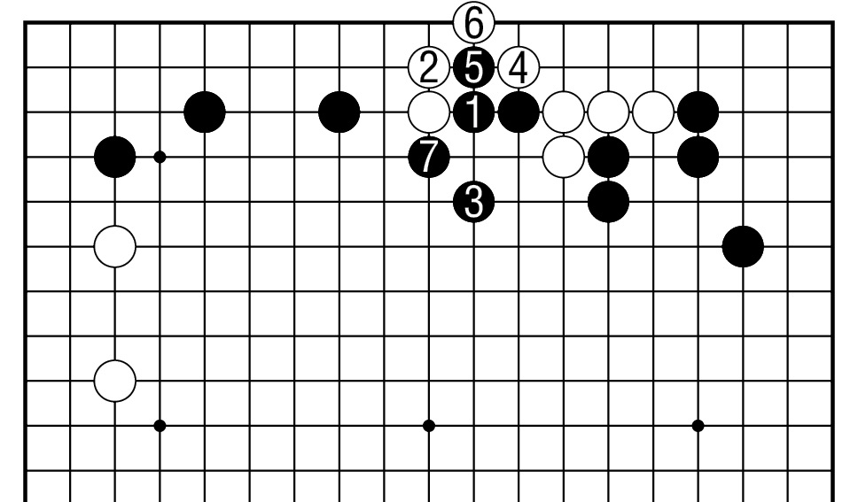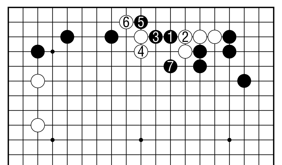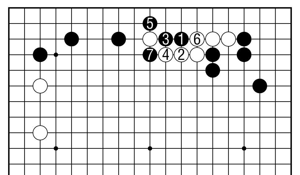 黑1打入时,白2接无理,黑3顶是好棋,白4时,黑5、7是追击白棋的好次序。