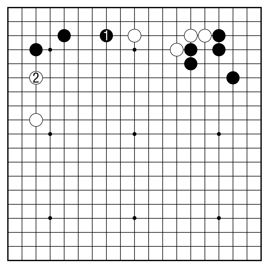 黑先。黑1逼攻,白2拆二,黑棋欲通过攻击上边白棋的弱点来掌握全局的主动权。请问黑棋打入的急所在哪里?