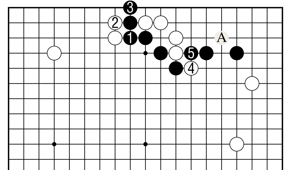 黑3下立时,白棋不下在A位,而是白4扳则野心太大,黑5断后,白棋不好。