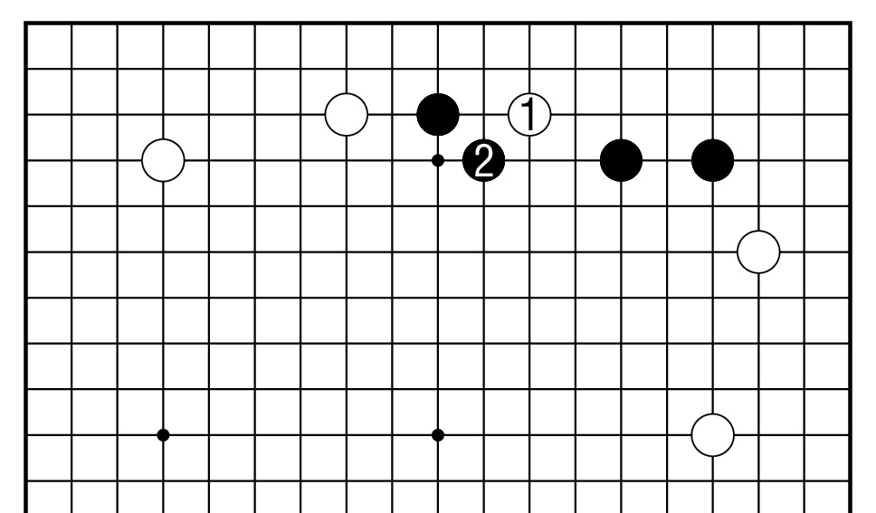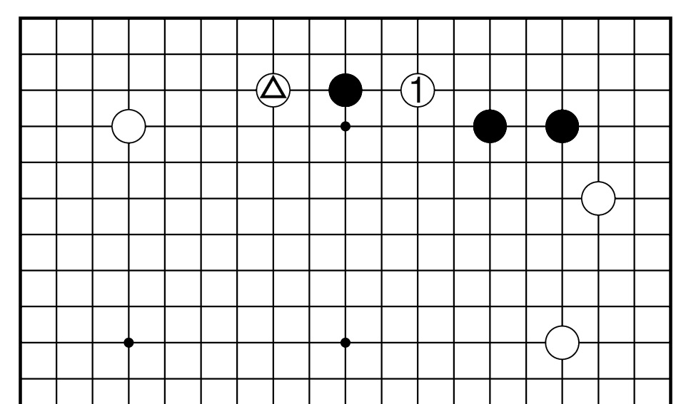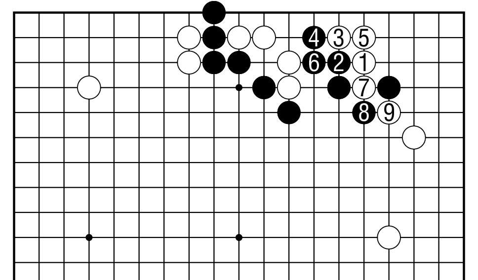续图7,其后白1打吃,然后白3长,但黑4靠住,白棋以后不好下。