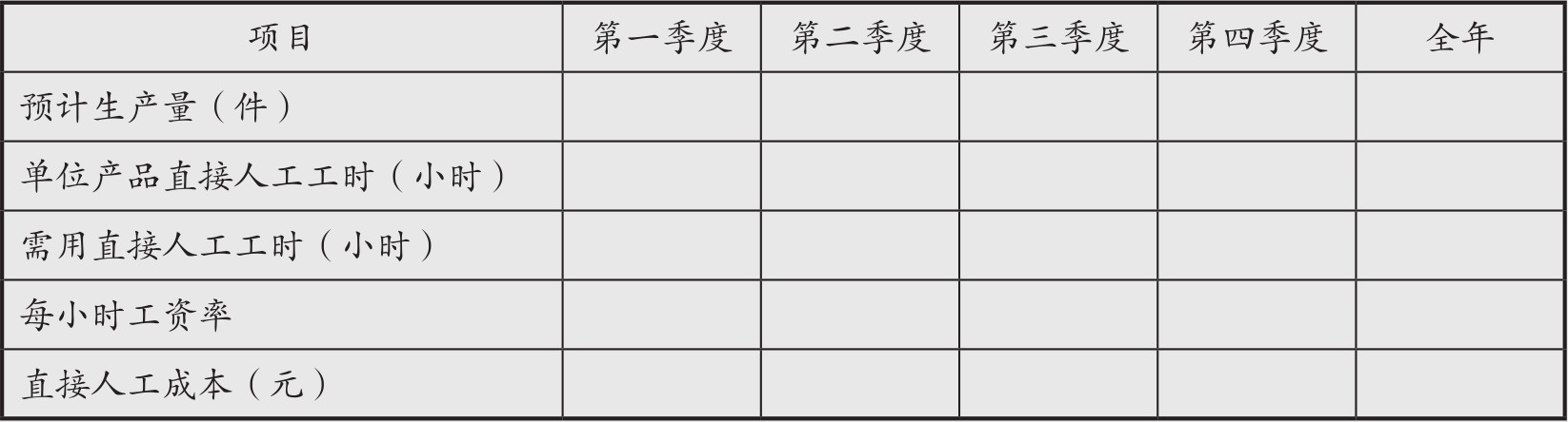 直接人工预算以生产预算为基础进行编制,基本计算公式如下: