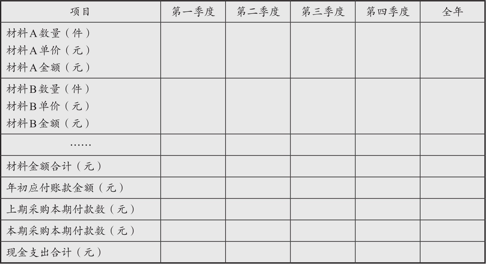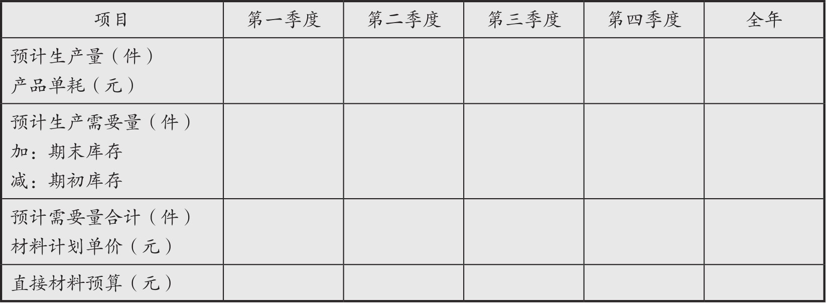 (1)直接材料预算