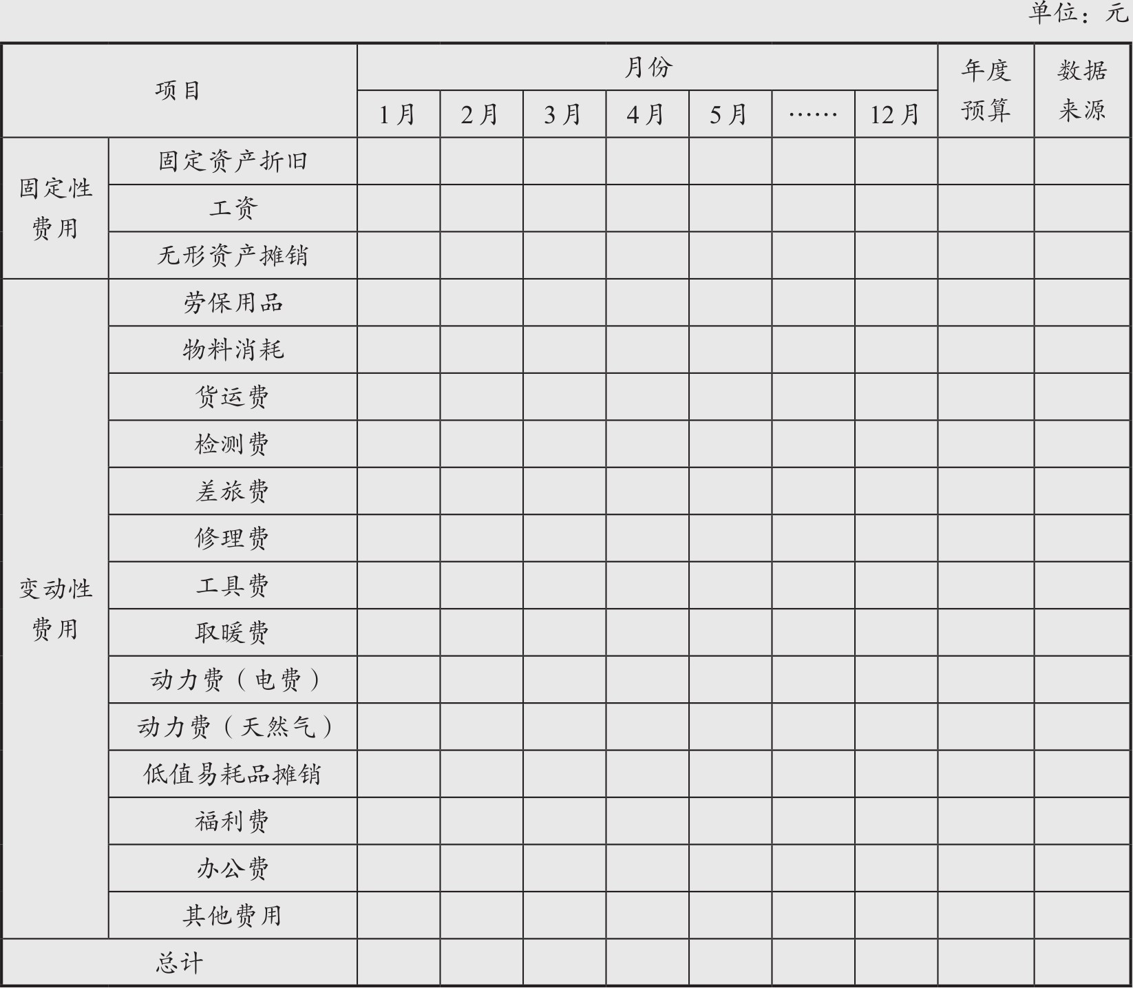考虑到制造费用的复杂性,为简化预算的编制,通常将制造费用分为变动性制造费用(通常包括动力、维修、间接材料与人工等费用,计算变动性制造费用的关键在于确认哪些是可变项目)和固定性制造费用(通常包括厂房和机器设备的折旧、租金、财产税和一些车间的管理费用,它们支撑着企业总体的生产经营能力,一旦形成,短期内就不会改变)两大类,并采用不同的预算编制方法。