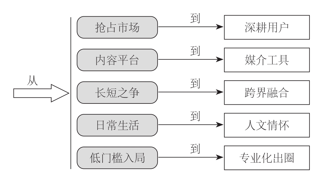 短视频发展到今天,视频化已经成为媒介传播不可忽视的力量。从媒介属性而言,短视频由于其内容特征的视频化,在媒体深度融合中抢占了发展先机。用户的多样化需求与平台的正确引导紧密相关,传媒行业应始终强化内容导向。未来,短视频发展要回归内容价值,从娱乐、社交、消费等逐步转向新闻资讯、生活服务、文化传承等参与社会建构的轨道上,从社交属性过渡到内容属性。作为一种媒介形态和媒体创新形式,短视频的核心要素仍然是视频,而视频不仅是传统媒体视听传播的主要形式,也是媒体深度融合中的网络视听新业态。