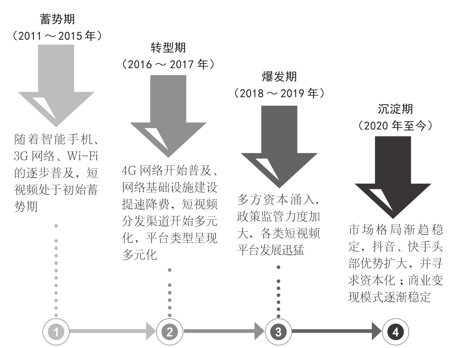 具体来说,短视频的发展经历了如图1-4所示的四个阶段。