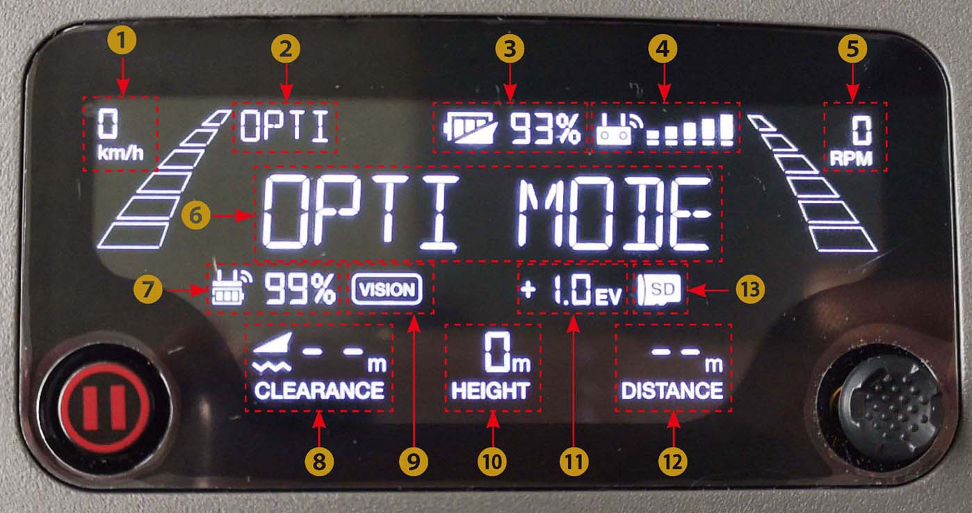 ②飞行模式:显示当前飞行器的飞行模式,OPTI是指视觉模式,如果显示的是全球定位系统(Global Positioning System,GPS),则表示当前是GPS模式。