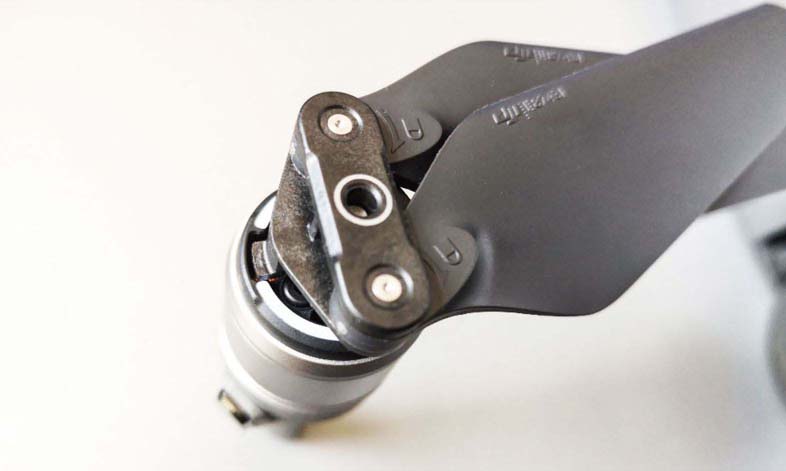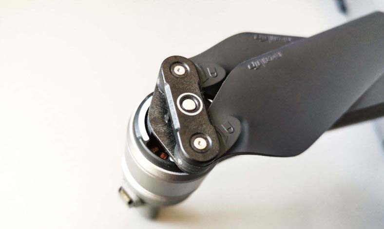 当我们不需要再飞行无人机了,就可以将无人机收起来。在折叠收起无人机的过程中,需要将螺旋桨也收起来,这样可以防止螺旋桨伤到人或自己受伤。拆卸螺旋桨的方法很简单,只需用力按压桨帽到底,然后沿螺旋桨所示锁紧方向反向旋转螺旋桨,即可拧出和拆卸下来。
