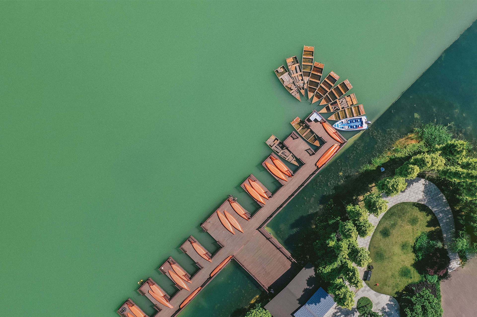如果你是摄影爱好者,又喜欢出去旅游,希望用无人机来记录美好的山水风光,那么建议你购买大疆Mini或者Mavic系列无人机,不仅能拍摄出高清的画质,出门携带也非常方便、轻巧,一只手就能轻松拿下,出行没有负担。图1-5所示为大疆御Mavic系列无人机在空中飞行时航拍的画面效果。