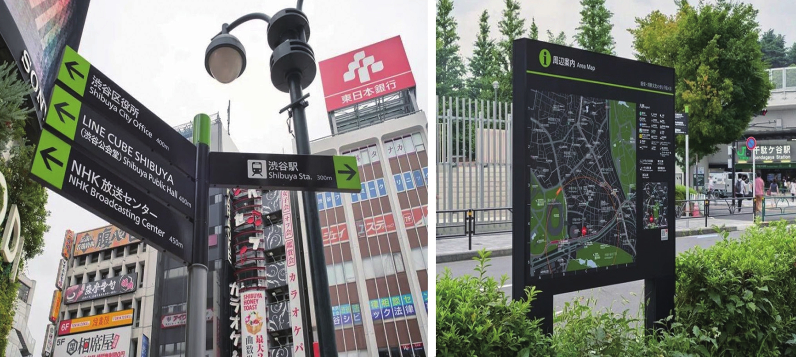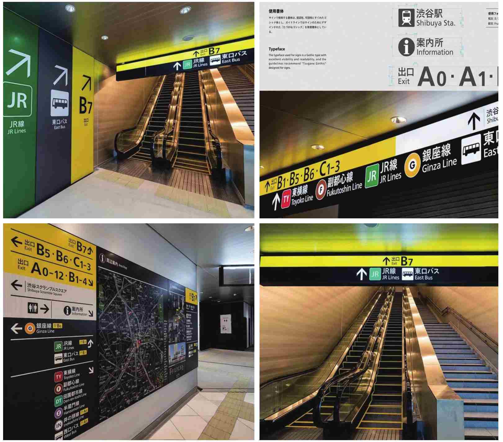 导视专项奖SDA Award(日本导视设计大赏)如此评价导视的重要性:“今天的导视被视作将城市空间、经济活动与人联系起来的接口,在活跃环境和建立交流上发挥着必不可少的作用。”获得日本导视设计大赏的涩谷导视项目,将车站的导视与街道的导视当作一个整体,共同打造空间环境的整体感(图1-27和图1-28)。