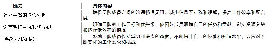 表1-2 小团队资源的聚焦和高效利用需具备的能力