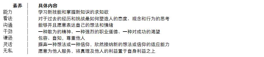 可见,小团队很重要的一个特点是每个成员综合素养都很强。这些素养如表1-1所列。