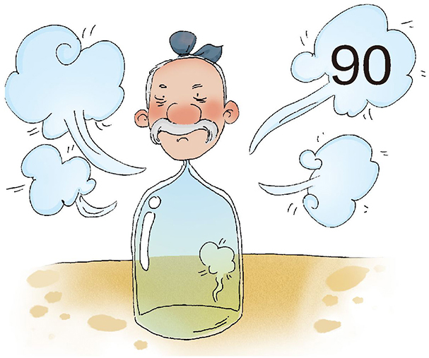到了九十岁,肾气枯竭,其他四脏所属的经脉也全都衰竭了。