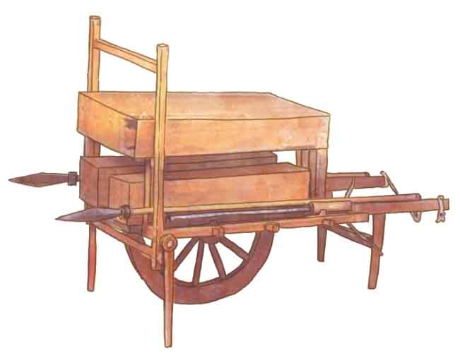 ▲明代架火战车(模型)