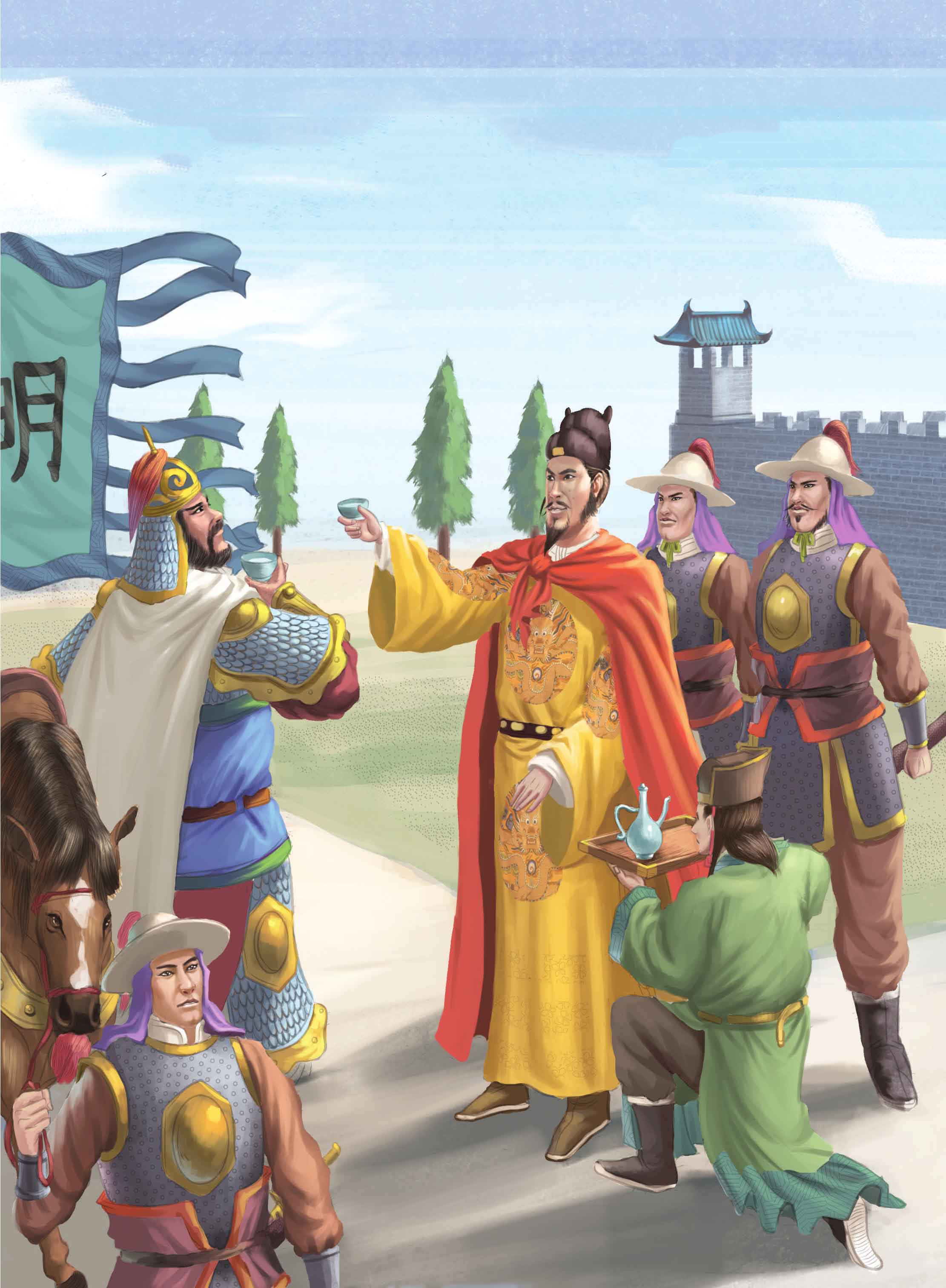 公元1372年,朱元璋派大将徐达、李文忠、冯胜分兵三路进军大漠,再次向元朝残余势力进攻。
