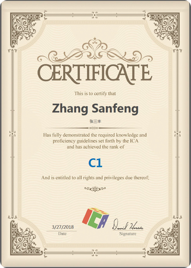 想要证明自己的魔方水平到底是什么级别,可以通过参加ICA魔方段位考试来认证。在全国各个城市都设有魔方段位考试中心,会定期举办ICA魔方段位认证考试,通过官网报名并现场参加考核后会根据你的魔方水平获得相应的段位证书,作为证明魔方技能水平的认证。
