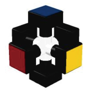 从立体结构上看,魔方内部通常包含一个隐藏的“三维十字轴”或叫做“十字轴”。这个轴上连接着6个色块,每个色块颜色都不一样,这6个色块对应着魔方每个面正中间的那个块,叫做“中心块”。