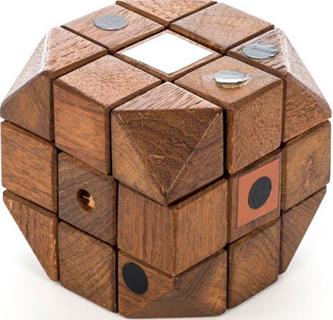 鲁比克教授在教学过程中,为了帮助他的学生更好地理解“空间转换”这个概念,制作了这样一个由很多木制小方块组成的教具,现在被我们称作“始祖魔方”。