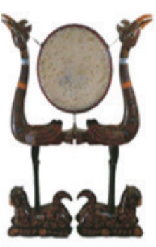 图1-1 战国楚墓出土的彩绘漆木虎座鸟架鼓